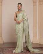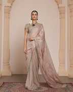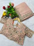 Make a grand style statement with this Beautiful Designer Saree, exquisitely crafted to reflect luxury, tradition, and modern flair. The saree features intricate Jari Dori and thread embroidery work across the body, showcasing delicate patterns that highlight skilled craftsmanship and cultural richness. The highlight of this ensemble is the pallu adorned with real mirror work, which adds a radiant sparkle and an artisanal charm, making it perfect for festive occasions, weddings, and celebrations. The saree is further enhanced with an embroidered and ruffled skirt design, blending classic elegance with contemporary drama to give it a bold, fashionable edge. The ruffled detailing adds volume and movement, creating a graceful and eye-catching silhouette. Whether you're attending a reception or a traditional event, this saree offers a unique combination of intricate handwork and stylish design that ensures all eyes are on you
