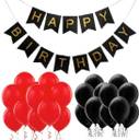 Party Decoration 11 Pcs Kit Black Happy Birthday Banner, Black and Red Balloons