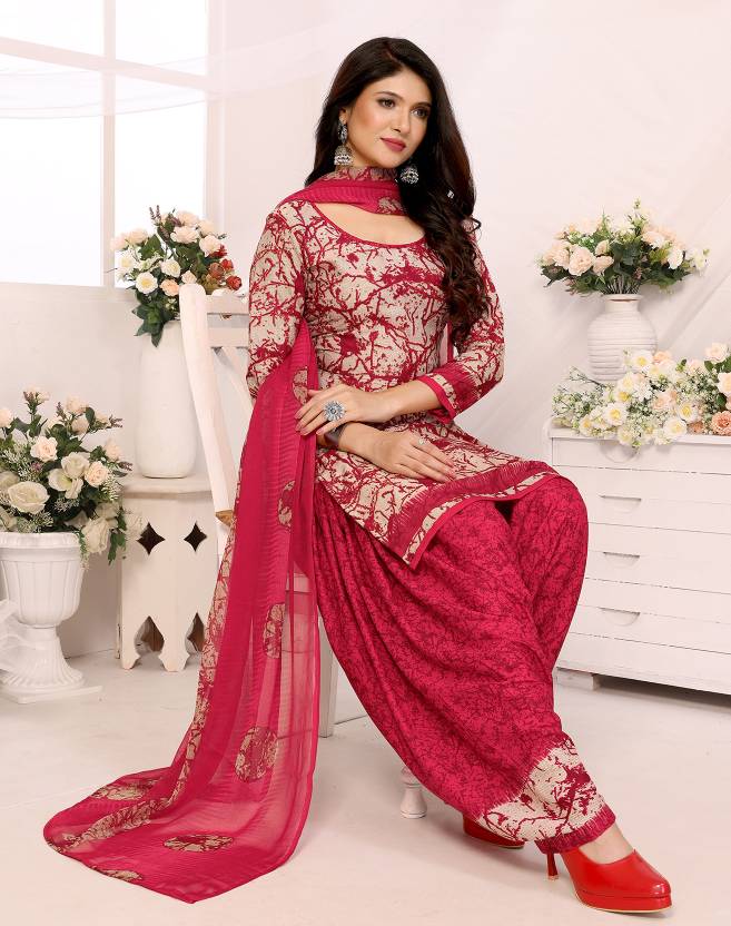 Womens Crepe Printed Unstiched Dress Material. Add style to your Daily Wear Collection with this Printed Dress material Salwar suit. 1 Unstitched Salwar, 1 Unstitched Top, 1 Dupatta.Top & Bottom Fabric : American Crepe, Dupatta Fabric : Martina You can use it for daily wear purpose it will give you immense comfort and fresh styling look.