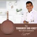 STYLISH COOKWARE - Duralife Die-cast Dosa Tawa adds elegance to your kitchen with its copper colour and wood-finish soft-touch handle, offering a comfortable grip.