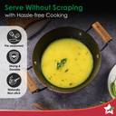 Elegant Acacia Wooden Handles: The handles made from real Acacia wood don’t heat up while cooking and give a strong grip to the kadhai, making them convenient to use.