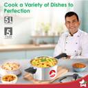 Sturdy Construction for Durability: An aluminium core is sandwiched between layers of 18/10 food-grade stainless steel and a 430-grade stainless-steel induction base for uniform heat distribution and durability.