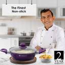 WONDERCHEF Royal Velvet Non-Stick Wok with Lid,Induction Bottom,Soft-Touch Handle Kadhai 24 cm diameter 2.7 L capacity (Aluminium, Non-stick, Induction Bottom)