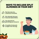 Almonds are a versatile tree nut. They come whole, splits, blanched, slivered, flaked and ground, so make a useful ingredient adding texture and taste to meals. Plus, like fruit and vegetables, almonds are packed with vitamins, minerals, antioxidants and phytochemicals beneficial to health. Enjoying a handful of nuts (30g) regularly as part of a healthy diet may reduce your risk of heart disease and type 2 diabetes, and can help with weight management. So eat two serves of fruit, five serves of veggies and a handful of nuts every day. A 30g serve of almonds is about 20 nuts. Almond splits add cost-effective whole almond appearance to baked goods, confections, salads, and granolas.