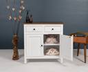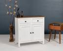 Woodefly solid wood side cabinet with 2 drawer Solid Wood Free Standing Sideboard (Finish Color - White with Honey oak finish top, Door Type- Hinged, Pre-assembled)