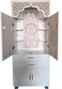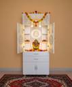 Offering a handcrafted design, this home temple boasts attention to detail, offering a unique piece for your spiritual space. The compact size fits easily on shelves, tables, or altars, ensuring it blends seamlessly into your home. Its drawer storage provides a convenient place to keep pooja items organised, adding to its practical yet aesthetically pleasing nature.