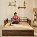 Owing to its versatile design, this sofa cum bed is a good addition to various spaces, from living rooms to guest rooms. Featuring a dual-purpose structure, it serves as a cosy seating option during the day and a comfortable bed at night. Thanks to its modern aesthetics and practical features, it seamlessly blends with different interior styles, making it a valuable piece for homes with limited space or a need for multifunctional furniture.