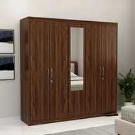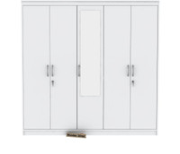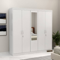 Wooden Street Mahin 5-Door Wardrobe Stylish with Hanging Rod, Mirror Engineered Wood 5 Door Wardrobe (Finish Color - Frosty White Finish, Mirror Included, Knock Down)