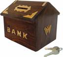 Wooden Wonders HANDMADE CLASSICAL HUT MINI BANK TOY BY LOCAL ARTISANS VINTAGE HANDICRAFT OPEN TOY Coin Bank (Brown)
