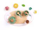 The set is meticulously crafted from durable and eco-friendly wood, ensuring it can withstand hours of play while maintaining its beauty and integrity. The set features a classic design with smooth edges and a natural finish, making it safe and comfortable for little hands to hold. The set’s vibrant colours and whimsical patterns are sure to capture the attention of young children.