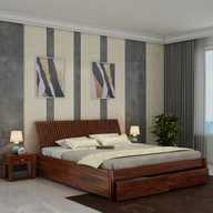 WOODENJOY Sheesham Wood Queen Bed With Drawers Storage/Wooden Queen Bed With Storage Solid Wood Queen Drawer Bed (Finish Color - Walnut Finish-1D, Delivery Condition - DIY(Do-It-Yourself))