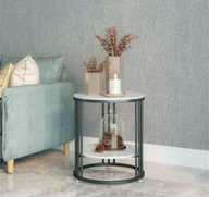 woodsyshoppee Round Side Table Black Metal Frame, 2 Tier Coffee Table For Living Room Bedroom Engineered Wood Coffee Table (Finish Color - White, Pre-assembled)