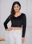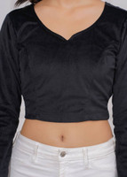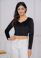 Crafted from soft velvet fabric, this crop top feels gentle against the skin. The rich texture elevates its style, making it a suitable choice for parties and festive occasions. Also, this fabric provides warmth, making it ideal for cool evenings. And, the durability of velvet ensures that this crop top maintains its shape and appearance over time, allowing for repeated use without losing its charm.