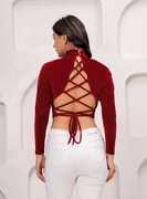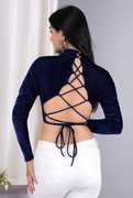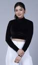 Material: stretchable Velvet, Style: western blouse full sleeves and medium round high neck with back zag zig design crop blouse