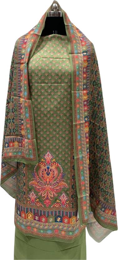 Unstitched Designer Woolen Suit Printed Kurta, Salwar & Dupatta Set