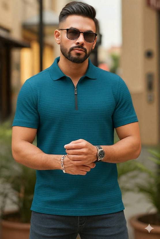 Men Solid Zip Ne...