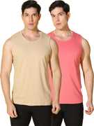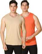 WOOSTRO Pack of 2 Men Solid Scoop Neck Cotton Blend Multicolor T-Shirt