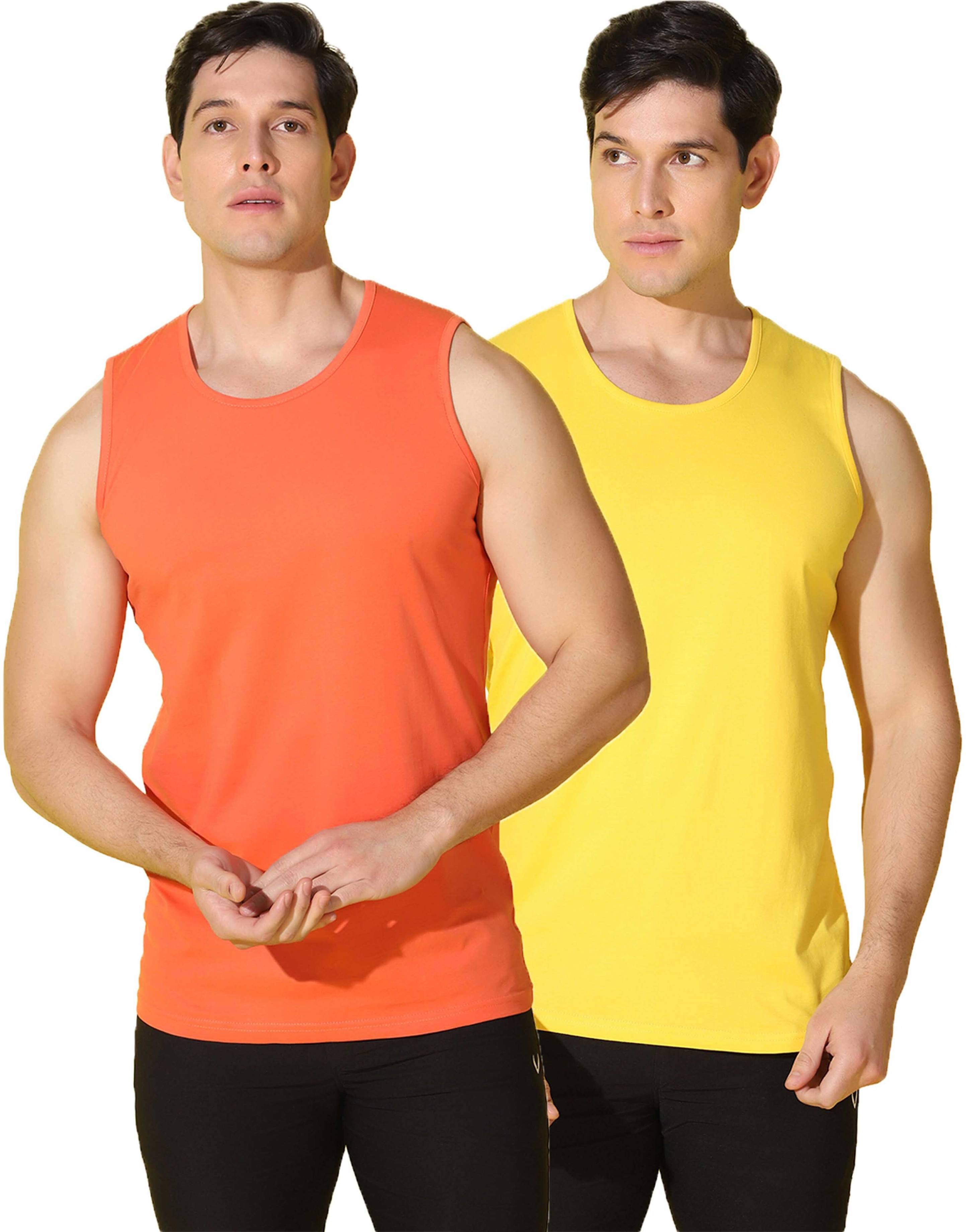 WOOSTRO Pack of 2 Men Solid Scoop Neck Cotton Blend Multicolor T-Shirt