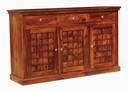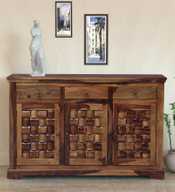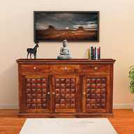 Wopno Furniture Pure Sheesham Wooden Sideboard Storage Cabinets With Drawer for Living Room Solid Wood Free Standing Sideboard (Finish Color - Honey, Door Type- Hinged, Pre-assembled)