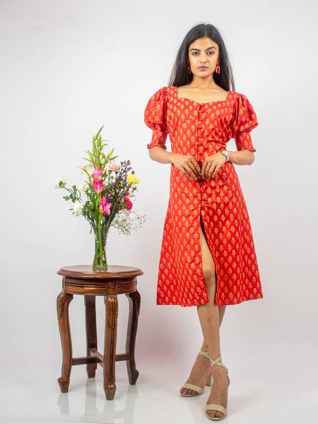 Women A-line Red Below Knee Dress