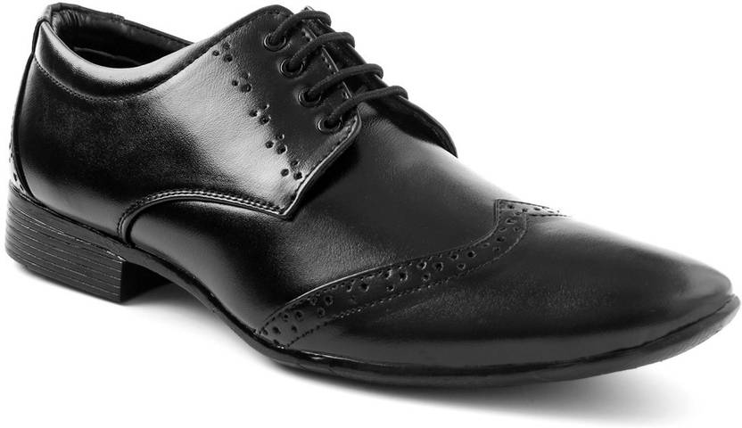Brogue Shoes Lace Up For Men (Black , 7 UK/India)