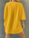 Women Typography Round Neck Cotton Blend Yellow T-Shirt