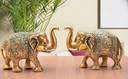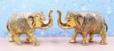 WORLDOFCRAFT Elephant Pair|Elephant Idol Statue 2 Pcs Set for Good Luck Home,Office Gifting Decorative Showpiece - 10 cm (Metal, Yellow)