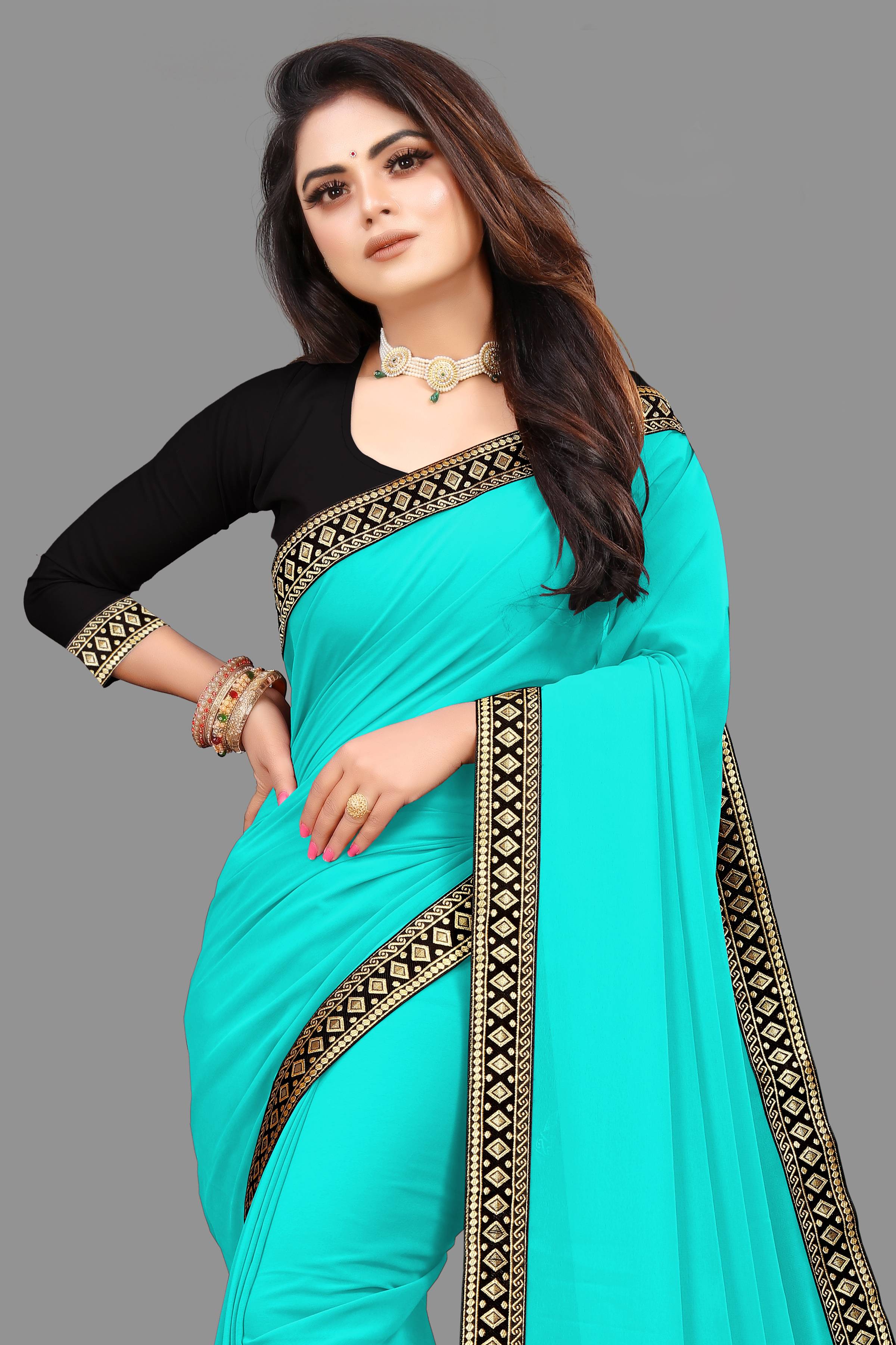 Worofy Solid/Plain Bollywood Georgette Saree (Multicolor)