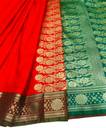 Princesshouse Handloom Banarasi Silk Saree Red Color With Green Blouse. Golden Zari Work PLAIN Saree For Womens