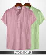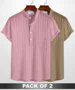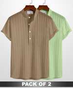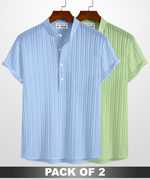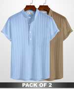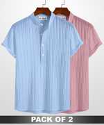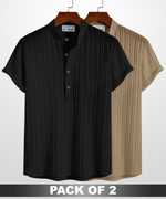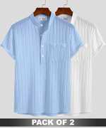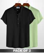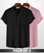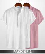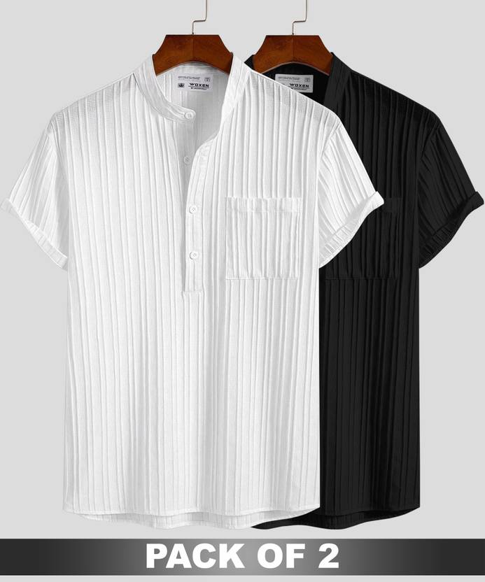 WOXEN Men Striped Casual White, Black Shirt (Pack of 2)