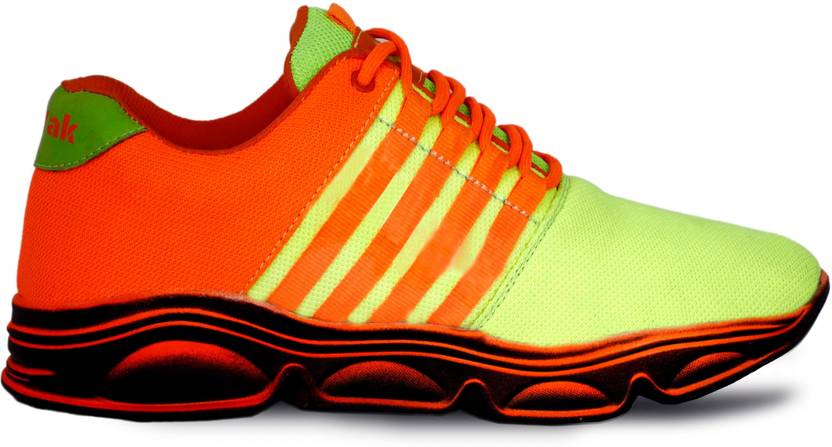 Woyak BREATHABLE MESH FABRIC PLASTIC SHORT RUNNING AIRMIX SOLE SHOES Training & Gym Shoes For Men (Green, Orange , 8)