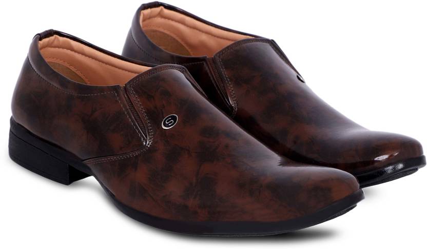 PATENT PARTYWEAR GLOSSY FINISH DERBY LACE UPS FORMAL SHADI SHOES Slip On For Men (Brown , 6)