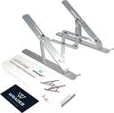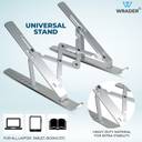 WRADER Premium Quality Laptop Stand: The aluminum laptop stand is made of high-quality aluminum alloy, strong and stable, support up to (10kg) but no worry any wobble. It has good anti-rust properties and maximizes the service life and also avoid from risking of any scratches to your devices. Easy to Use and Carry: No need to install, just open and use. And creative portable foldable design, the portable aluminum laptop stand holder can be folded to make it easy carry-on. Ergonomic Design: The laptop & tablet stand provides 7-speed adjustable height, adjust to comfortable operating angle and height based on your actual need for a perfect eye level and help to reduce neck pain back pain and eye strain. Cooling and Ventilation Design: The hollow design and forward-tilt angle offers great heat dissipation and natural airflow to prevent your laptop from overheating. Laptop cooling stand keeps your laptop cool and no more heating up. Wide Compatibility: The laptop stand fits all laptops 10 to 15.6 inches, such as notebooks 10 inches, 11 inches, 12 inches, 13 inches, 13.3 inches, 14 inches, 15 inches, 15.4 inches, 15.6 inches, Macbook Pro, Think Pad, Surface, Chromebook, Pad Pro etc.