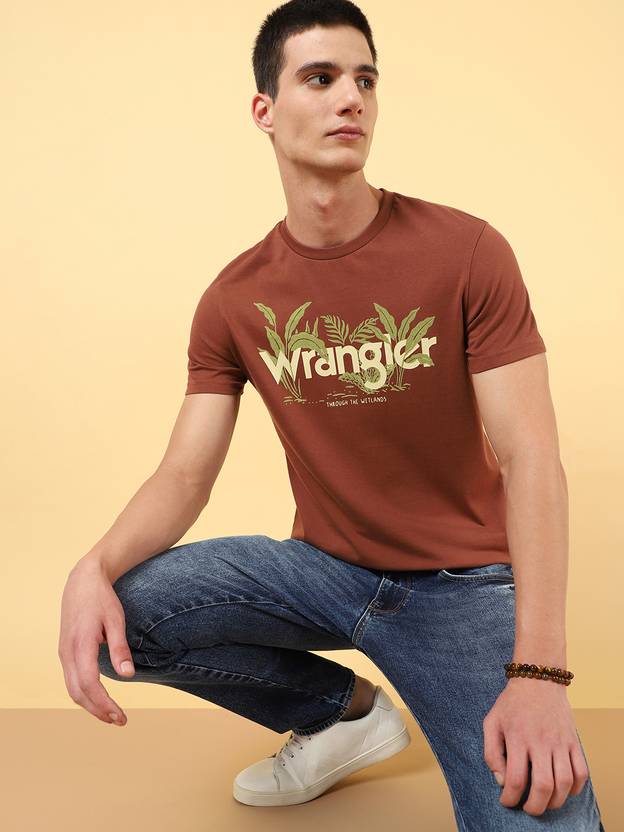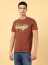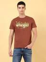 This Wrangler brown t-shirt is made from single jersey fabric for a soft and comfortable feel. The flock print pattern gives it a texture for a good hand feel. The regular fit and half sleeves make it a versatile choice for any casual occasion. Combine it with a pair of tinted jeans and sneakers for an exciting combination.