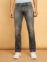 Be a trailblazer with Wrangler's Millard straight fit jeans from the Premium collection, where humble ruggedness meets contemporary style. Crafted from a blend of cotton, polyester, and elastane, these denims boast premium fabric, a black grey color aesthetic, and a medium aged wash, delivering a bold statement. With an authentic vintage stamp on the inner pocket bag and stretchy fabric for comfort, they redefine your casualwear. Team them with a black polo t-shirt to complete the look.