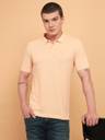 Men Self Design Polo Neck Cotton Blend Orange T-Shirt