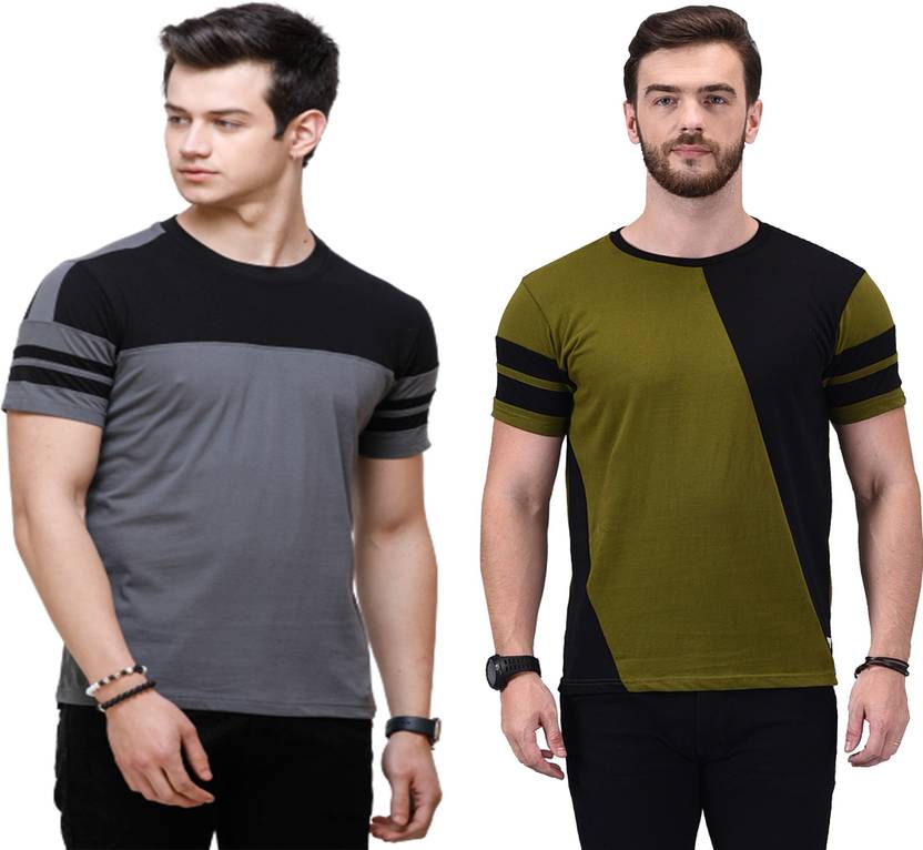 Wrath Colorblock Men Round Neck Green, Black, Grey T-Shirt