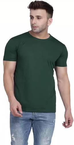 Wrath Solid Men Round Neck Green T-Shirt