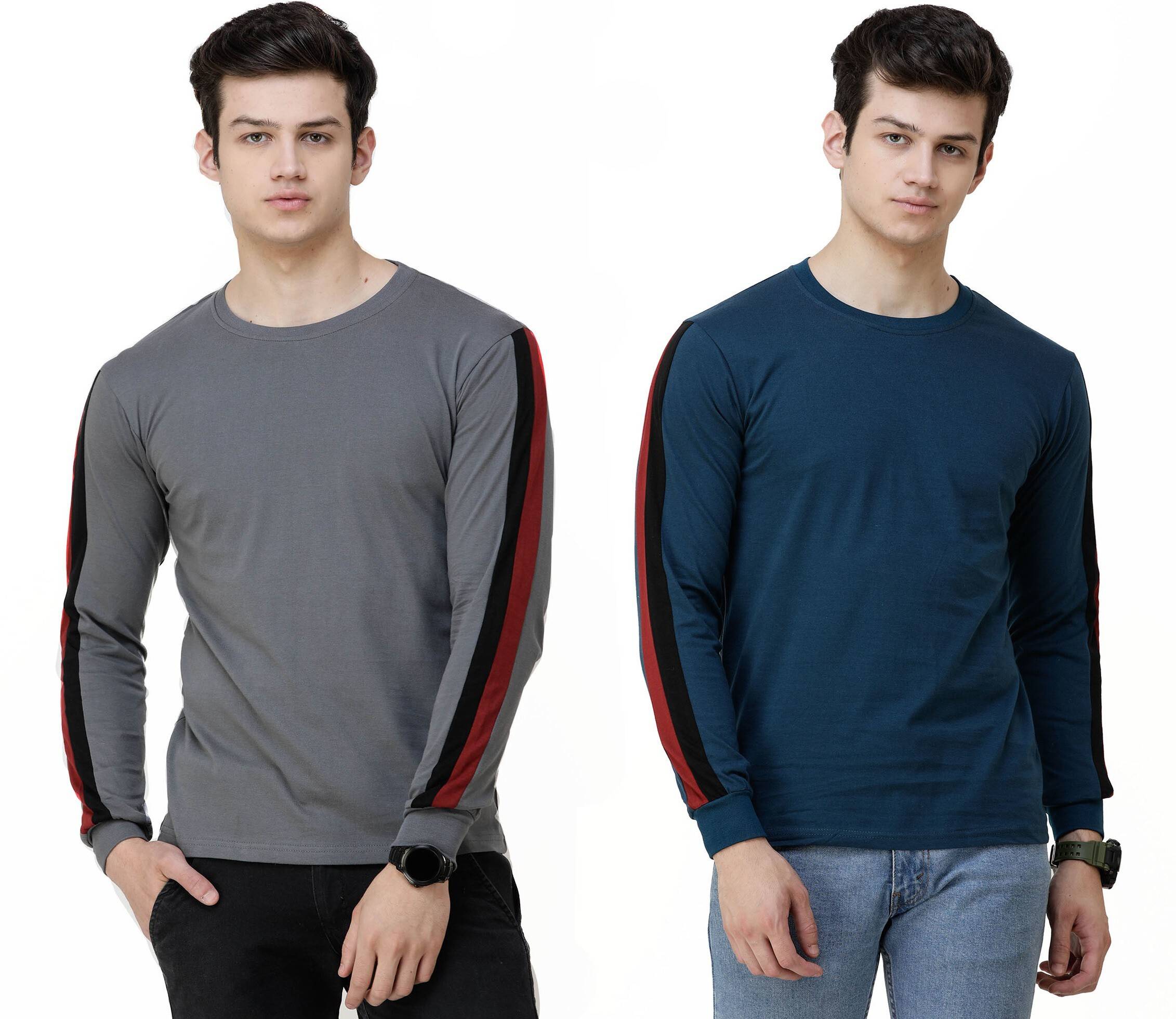 Featuring a round neck design, these T-shirts offer enhanced comfort. And, their full sleeves feature classic long stripes. These stripes can lend a fashionable edge to your look while keeping you warm during cool days. Additionally, thanks to their regular fit, these T-shirts ensure a flattering silhouette for every body type. Hence, you can head to a casual dinner date in one of these regular-fit T-shirts, impressing your companion with your refined style and comfortable wear.