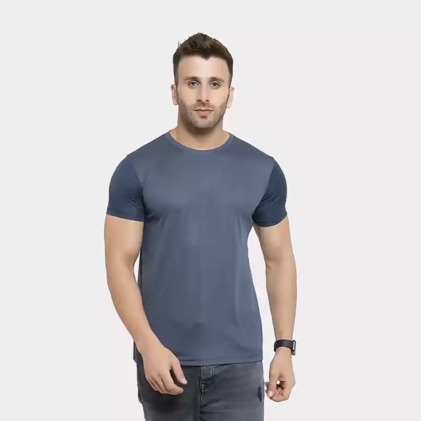 Wrath Solid Men Round Neck Silver T-Shirt