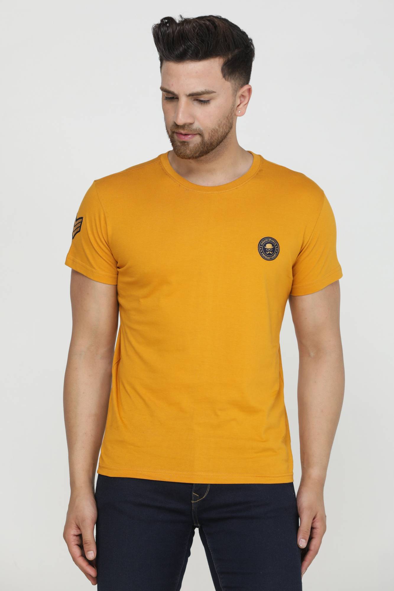 Wrath Solid Men Round Neck Yellow T-Shirt