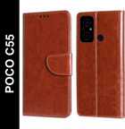 Wristlet Flip Cover for POCO C55 (Purple, Cases with Holder, Pack of: 1)