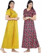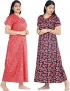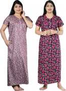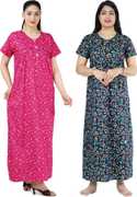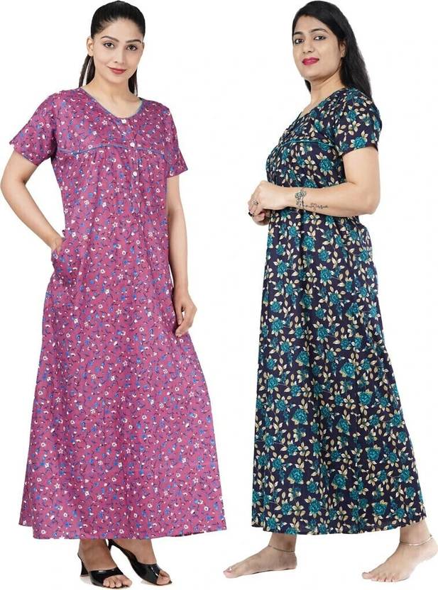 Wristy offers this delicately embellished rich long Printed night dress for a sweat free comfort all night long. This a perfect pick for women who are fond of stylish nightwear. This Half sleeved nighty is a must have for your night wear needs. Made with 100% soft cotton to keep you cool all throughout. This beautiful nighty comes in free size and completely adjustable for 40-44 inches bust size.