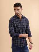 Men Slim Fit Checkered Spread Collar Casual Shirt