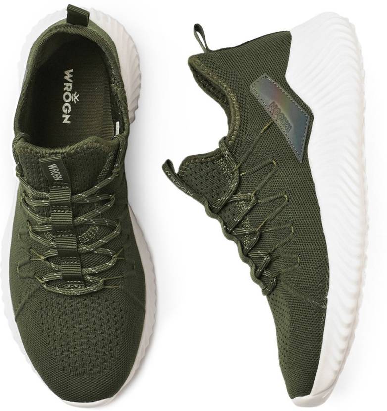 A pair of round-toe olive green sneakers, has regular styling, lace-up detailSynthetic upperCushioned footbedTextured and patterned outsoleWarranty: 3 monthsWarranty provided by brand/manufacturer. Change up your everyday style and opt for these well-designed WROGN casual shoes. When youre grabbing drinks with the guys, pair these olive shoes with chinos and a casual blazer.