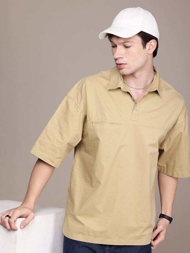 WROGN Men Solid Casual Beige Shirt