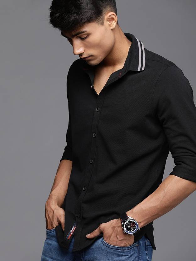 Men Slim Fit Striped Spread Collar Casual Shirt