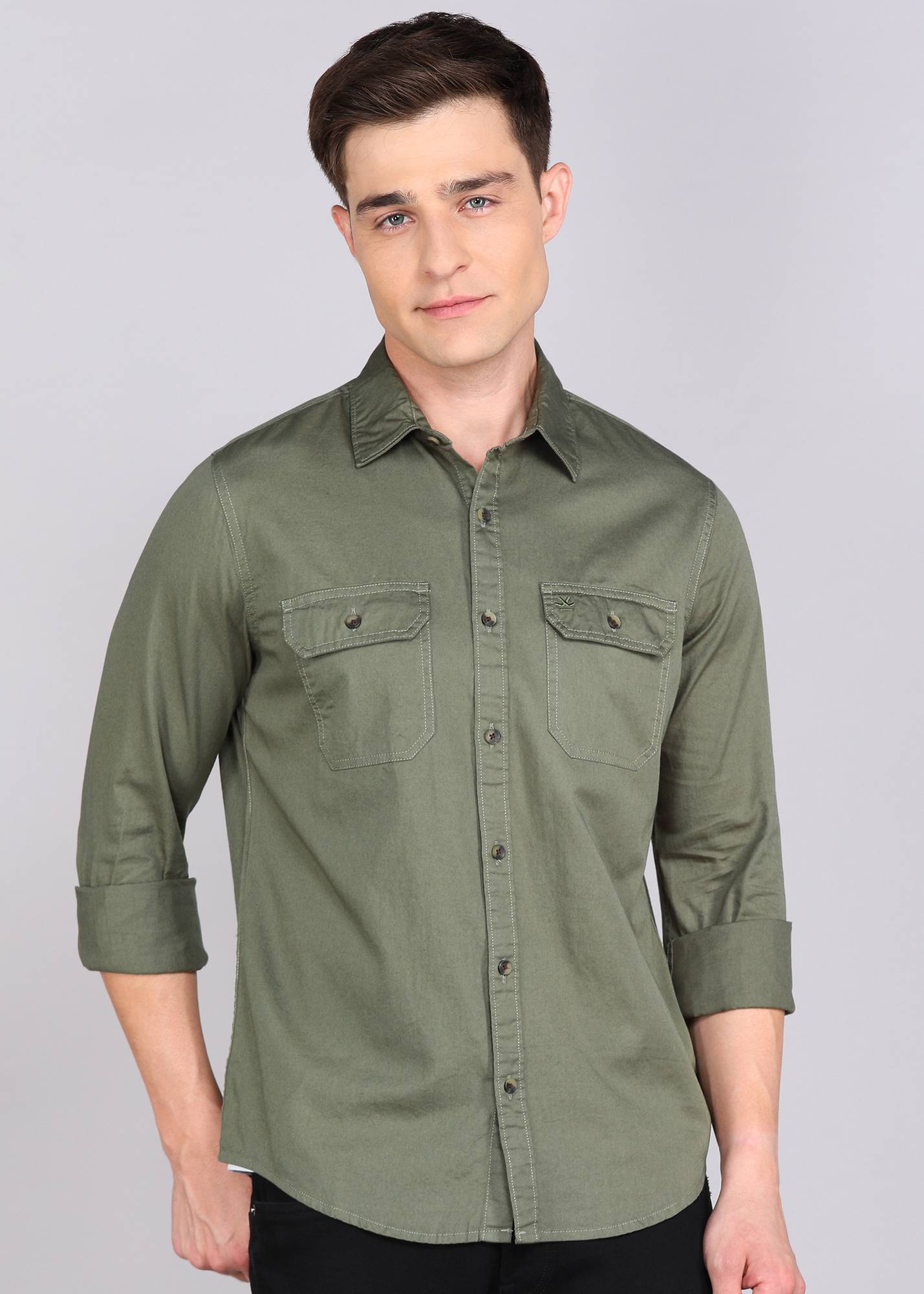 WROGN Men Solid Casual Green Shirt