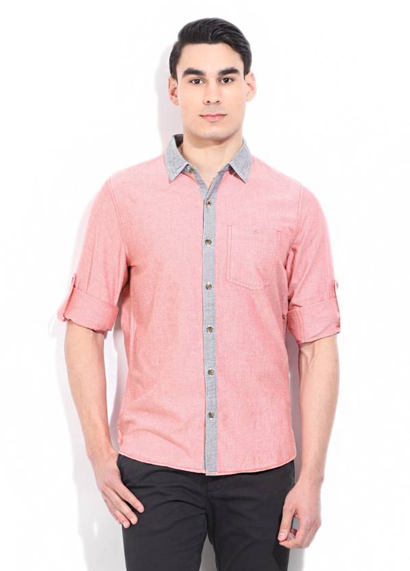 WROGN Men Slim Fit Solid Spread Collar Casual Shirt