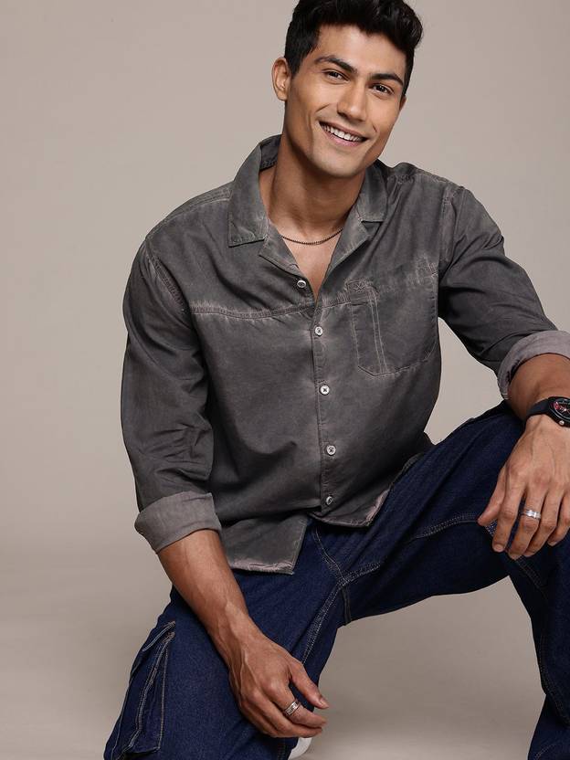 WROGN Men Solid Casual Grey Shirt